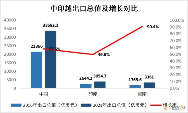 印度的则是初级产品,可见在贸易产业链中,中国的出口经济比印度高得多。中国在国际贸易中占有重大地位。